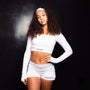 Comfortable stylish skinny strap white long sleeve and biker short det for Women in white color.